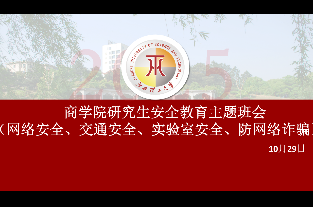 为提高研究生安全意识,推进平安校园建设。2025年10月29日10点,我院召开线上反诈防诈主题大会。本次班会由学科建设与研究生工作办公室主任章陶主持,副院长叶前林、学院全体硕士研究生参会。