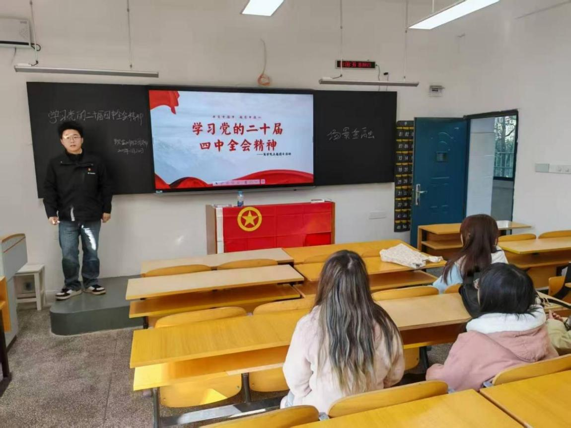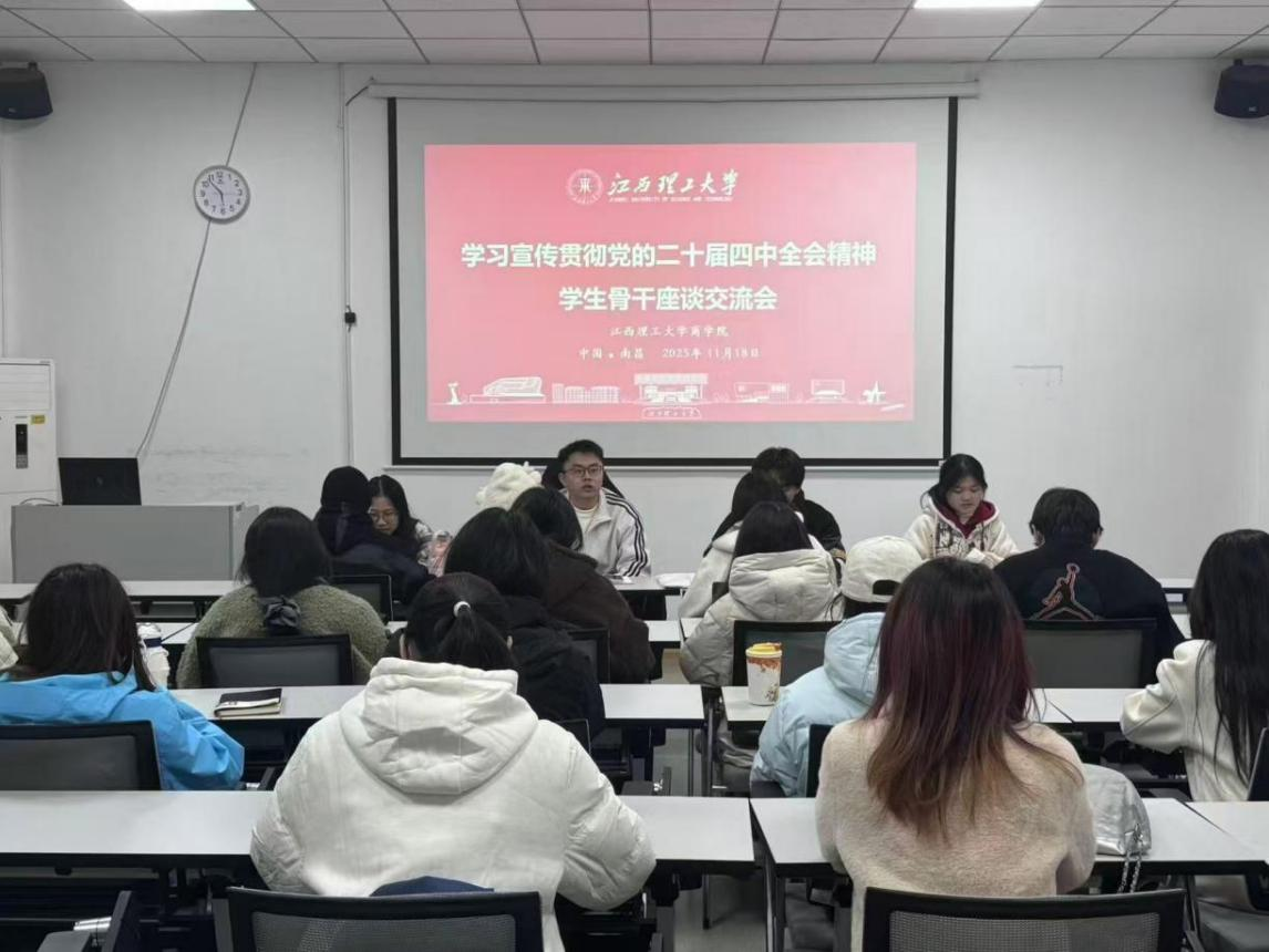 为深入学习贯彻党的二十届四中全会精神,引导青年学子将个人成长坐标融入国家发展大局,近日,商学院以思想引领为核心,紧扣青年成长发展需求,精心策划开展辅导员主题班会、学生骨干专题座谈、班级主题团日等系列学习活动,推动全会精神在青年学子中入脑入心、见行见效,为“十五五”新征程凝聚青春奋进力量。