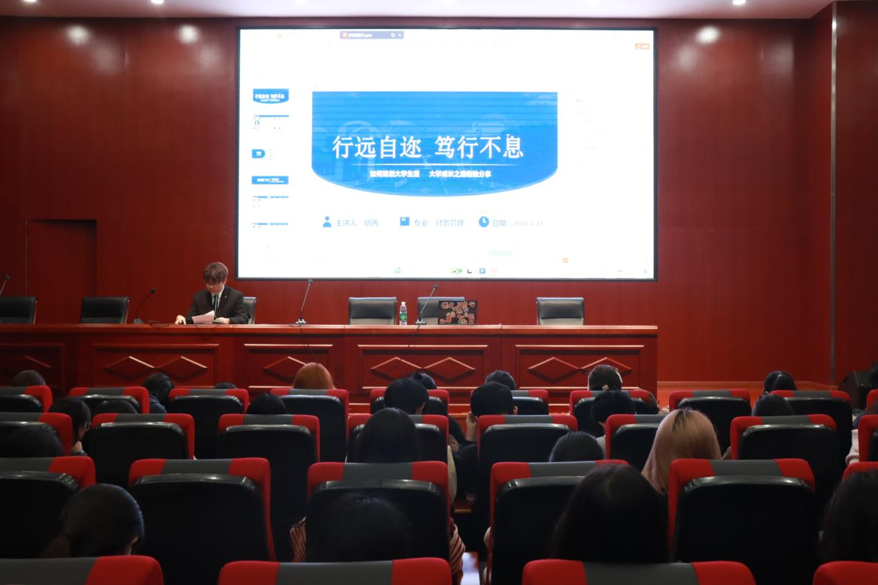 为充分发挥优秀学子榜样示范引领作用,引导学生科学规划学业与职业发展,4月22日晚,中澳智能制造学院(筹)(商学院)“榜样宣讲团”第二期宣讲活动在A308教室顺利举办。本次活动邀请了财管221班胡茜、人力222班冷黎萌两位优秀学生代表主讲,学院众多同学到场聆听。