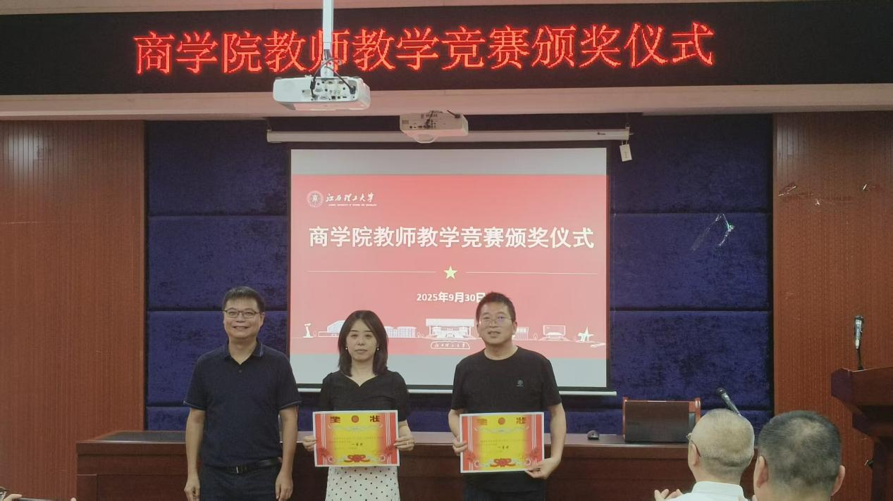 在热烈的掌声中,获奖教师依次上台,从院领导手中接过荣誉证书。一等奖获得者刘磊和王卉两位教师分别发言,他们分享了从教以来的心得与参赛感悟,表示将以此次竞赛为新的起点,继续深耕讲坛,不断探索教学方法,为培养优秀商科人才贡献更大力量。