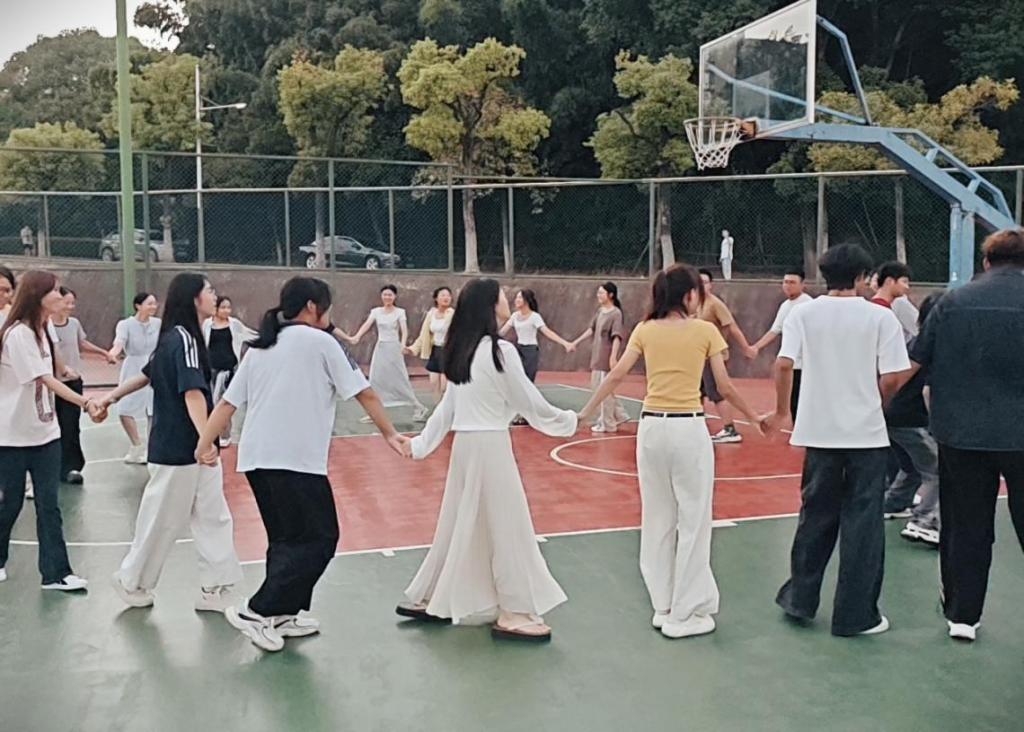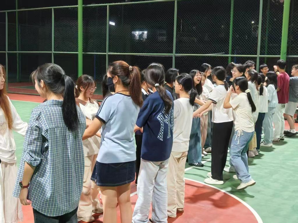 活动现场氛围热烈,“奏响敲击乐”热身游戏率先拉开序幕,学生们通过搓手、鼓掌等动作模拟不同天气,在趣味指令中放松身心;“名字大作战”环节,两队隔着床单布PK认人,欢笑间快速熟悉彼此姓名;“海水分开”游戏最受青睐,挑战者喊出“海水分开”后冲过同学手臂组成的“通道”,在突破“阻碍”中收获自信。此外,“鼠八洞”“解开千千结”等项目按需开展,从团队协作、反应能力等维度,让学生在互动中增进默契。