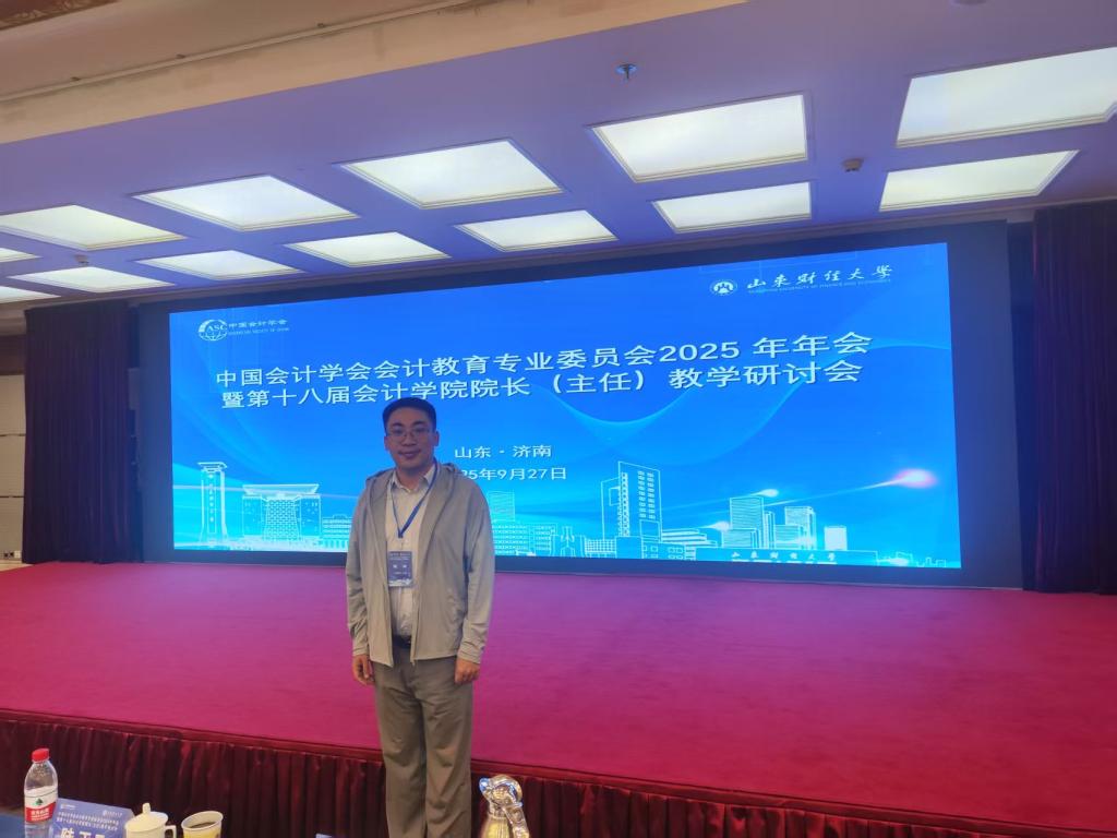 2025年9月26日至28日,“中国会计学会会计教育专业委员会2025年年会暨第十八届会计学院院长(主任)教学研讨会”在山东省济南市盛大举行。此次会议由中国会计学会会计教育专业委员会主办,山东财经大学会计学院承办。我院财务会计系主任陈伟受邀出席了本次会议。