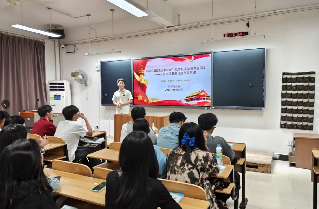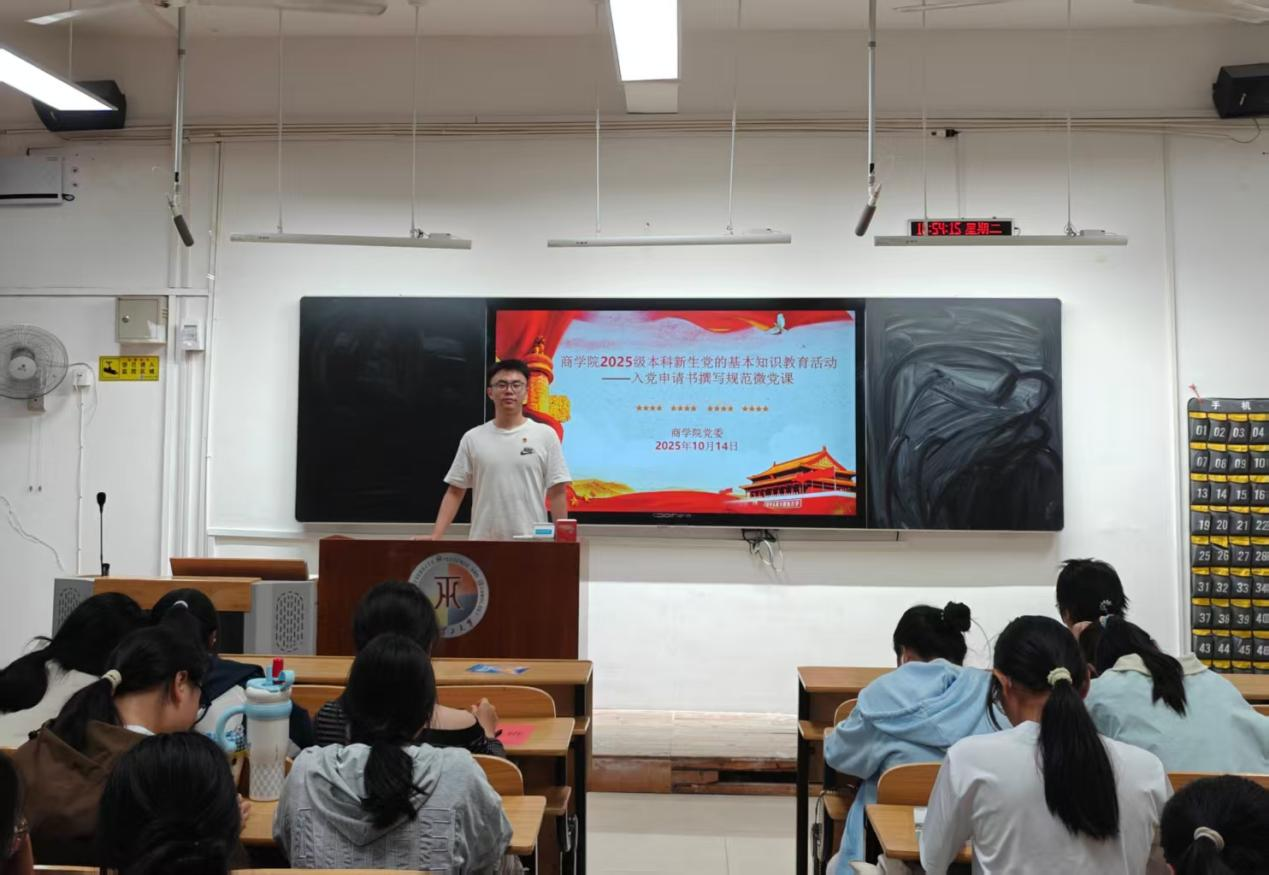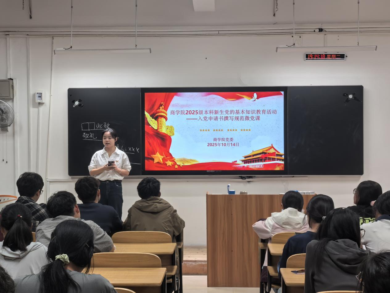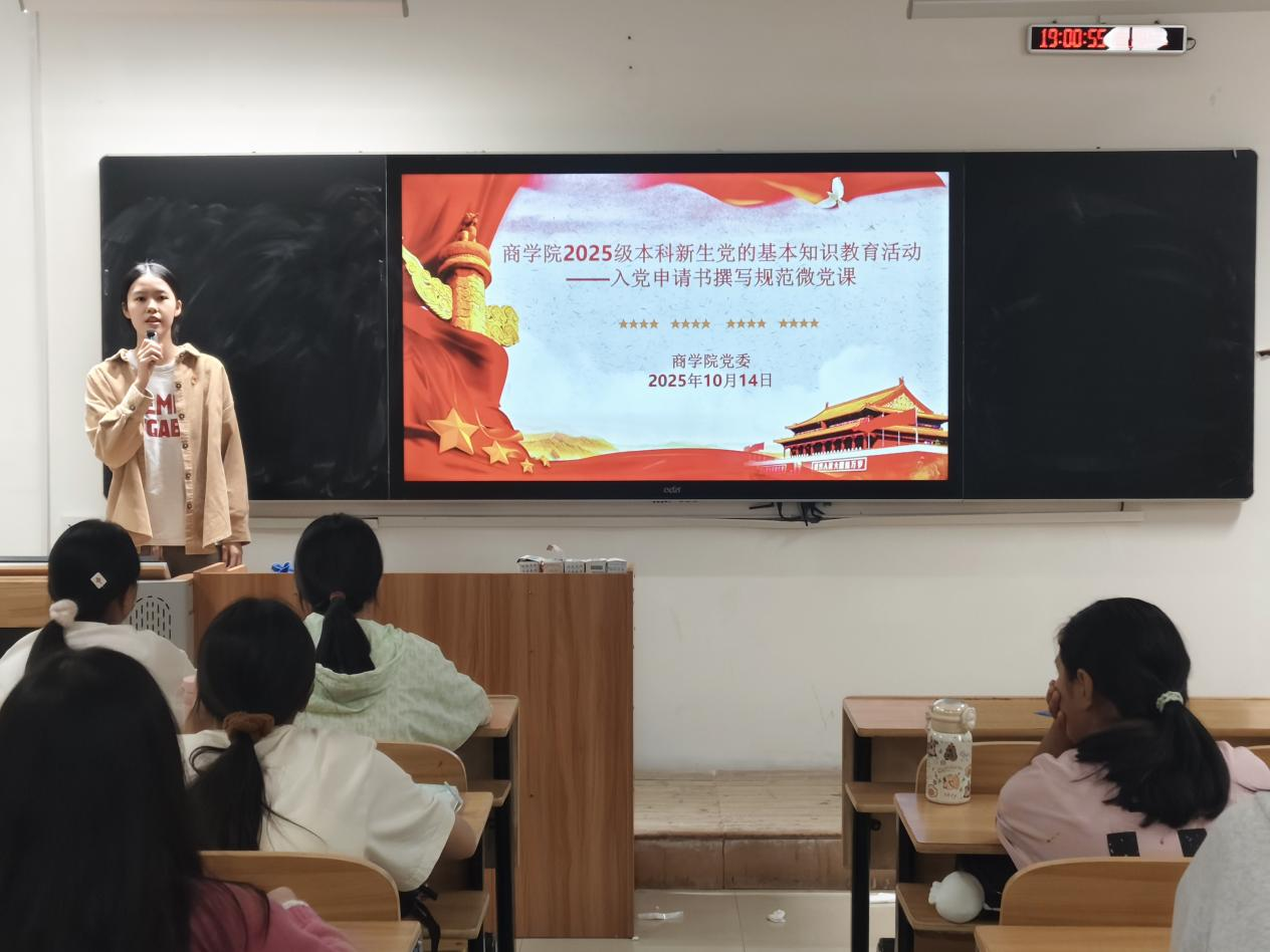 为帮助新生端正入党动机,明确入党申请书的书写要求,10月14日晚,商学院学生党员组成“宣讲轻骑兵”,深入到新生班级,给新生讲授党的基本知识教育——“入党申请书撰写规范”微党课。