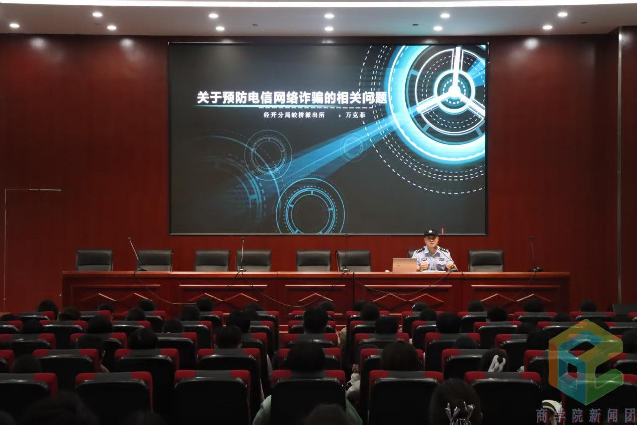 为切实筑牢大学生反诈安全防线,提高风险规避能力,10月14日下午,商学院在综合实验楼A308报告厅召开预防电信网络诈骗主题讲座,讲座特邀蛟桥派出所万克菲警官主讲。