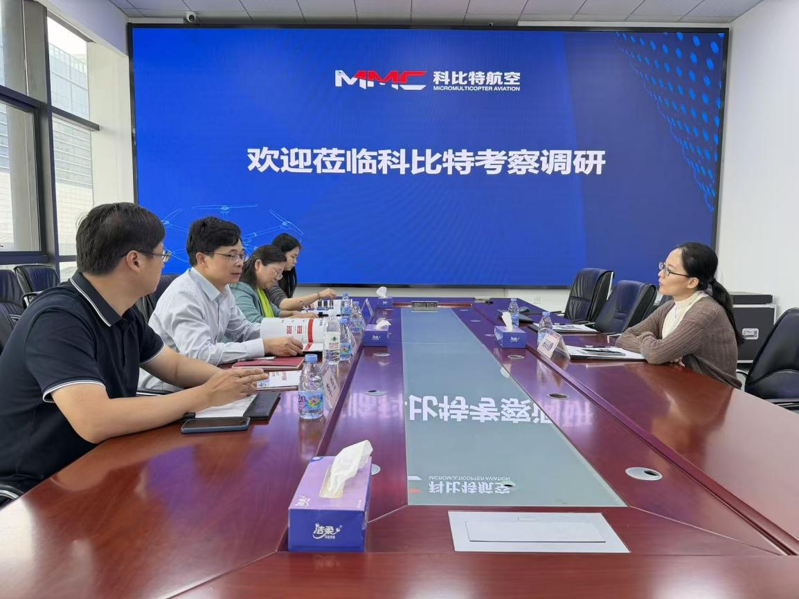 在深圳科比特飞智科技有限公司,邹国良一行在科比特董事会秘书、首席财务官蔺晓静的引导下参观了企业展厅,详细了解了企业的技术实力、产品体系以及与高校的产学研合作情况。随后,双方在人才培养、科研创新等多个领域进行了交流。