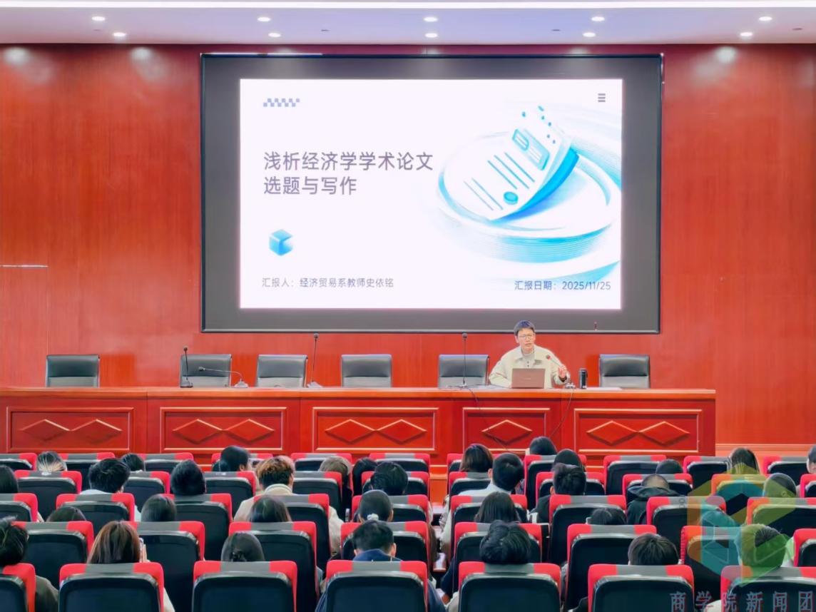 为帮助同学们系统掌握经济学学术论文写作方法,11月25日下午,商学院在综合实验楼A308报告厅举办了“经济学学术论文的选题与写作”专题讲座。本次讲座由经济贸易系教师史依铭主讲,数字经济专业学生参与。
