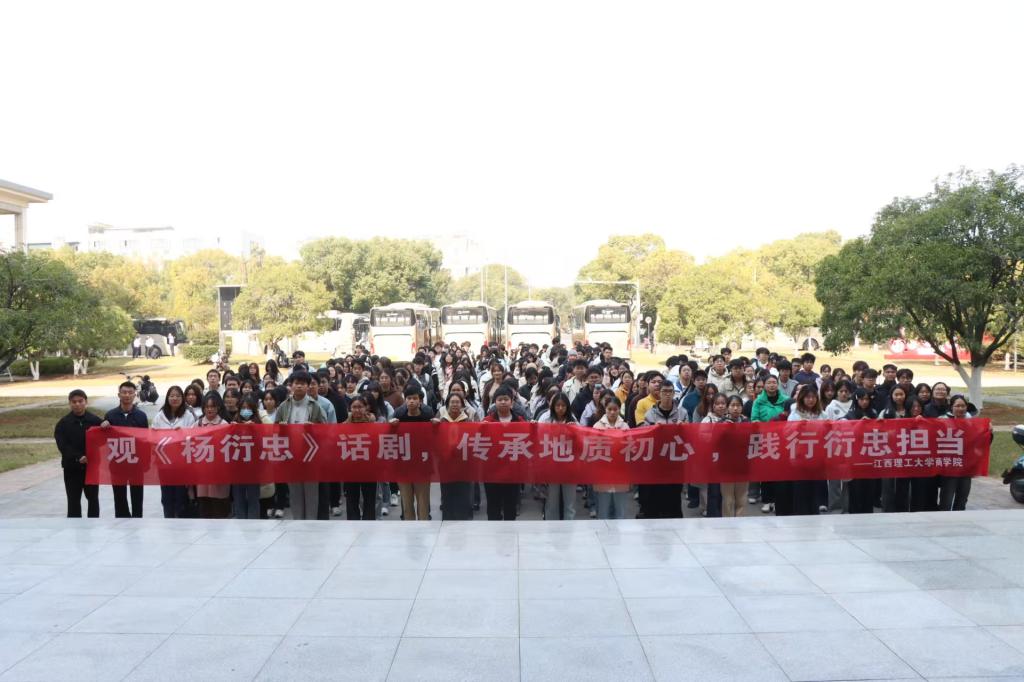 为传承科学家精神,厚植青年学子科技报国的使命情怀,12月7日下午,商学院组织全院各班学生及团学组织骨干,在学院学工办兼团委负责人段龙云、研究生助管熊进龙与林榕的带领下,从学校一栋教学楼前广场集中乘车前往江西省话剧团,观看2025年度国家“科学家故事舞台剧推广行动”重点入选剧目——话剧《杨衍忠》。