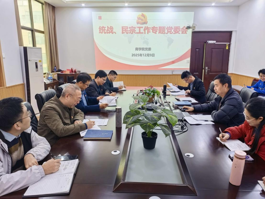 12月9日上午,商学院党委在405会议室召开统战、民宗工作专题党委会。学院领导班子、党委委员、系主任、科室主任、辅导员参会,会议由学院党委副书记(主持工作)晁云主持。