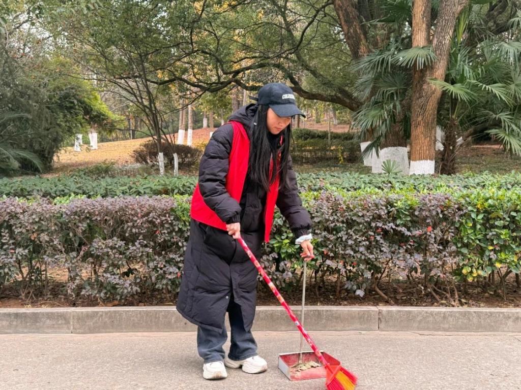 本次清扫行动精准聚焦校园卫生清洁薄弱点,覆盖校园主干道、文化广场、学院楼周边及公寓楼公共区域等多个重点场所,全力推进校园环境优化。在校园主干道,面对四散分布的落叶与枯枝,同学们分工协作、科学分拣归堆,同时细致清理砖缝内的纸屑与路沿石旁的积尘,让原本散落杂物的步道逐渐恢复洁净本色;文化广场上,志愿者们逐一擦拭宣传栏,仔细捡拾花坛边缘的烟头,整洁敞亮的场景赢得路过老师的驻足点赞;学院楼外,同学们高效分工、默契配合,仅用半小时便清理完绿植区堆积的落叶,让学院“门面”环境焕然一新;公寓楼周边,志愿者们不仅彻底清理了垃圾桶旁的污渍,更用消毒湿巾细致擦拭公共扶手与楼梯间小把手,全方位保障公共区域的整洁与卫生。