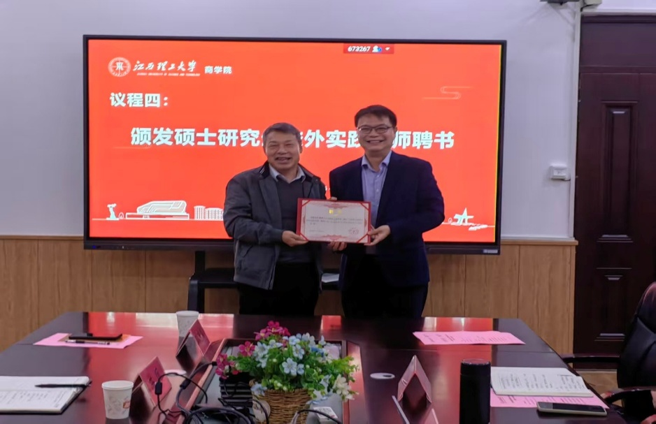 座谈会尾声,学院聘请吴德祯、洪侃为商学院MBA校外企业实践导师,并现场颁发聘书。