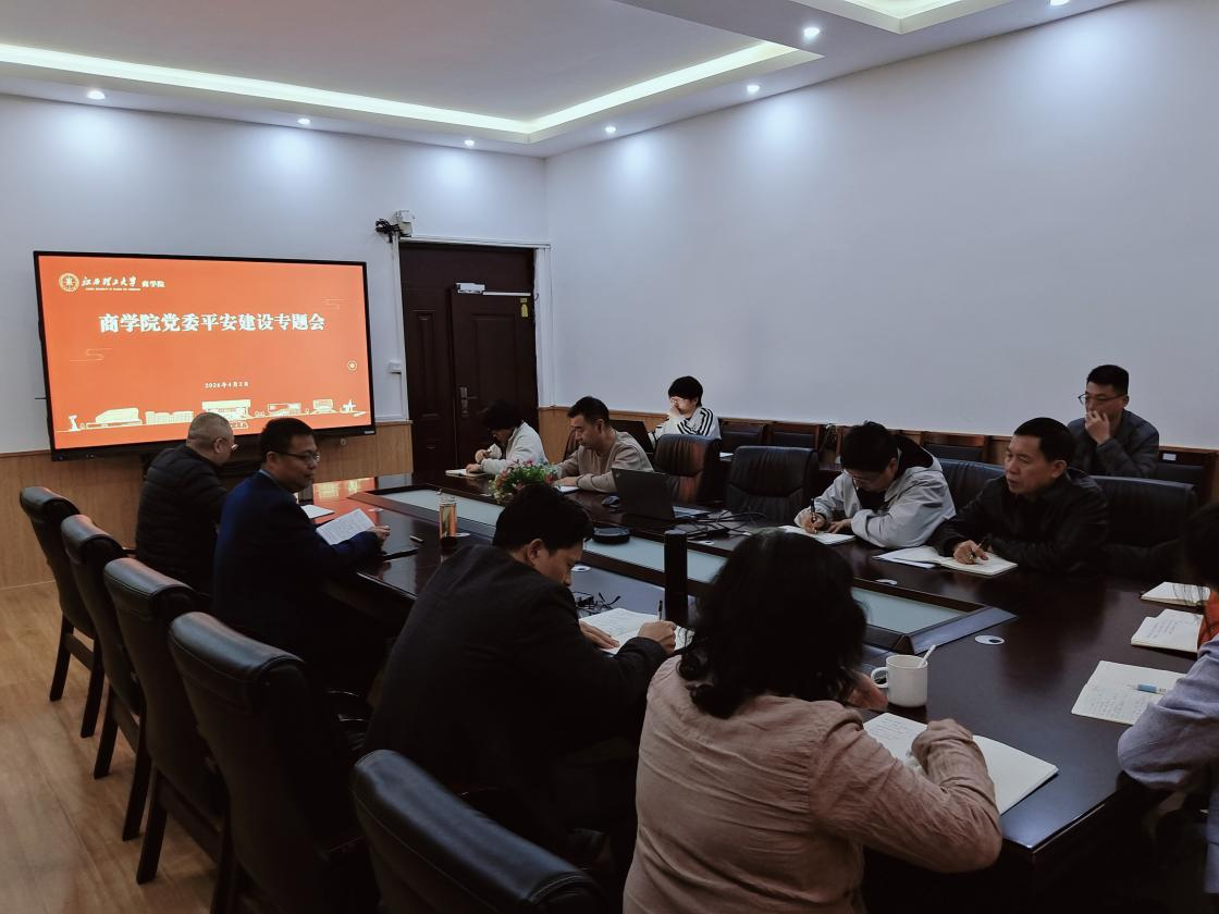 为深入贯彻落实学校关于平安建设工作的部署要求,切实筑牢校园安全稳定防线,4月2日下午,商学院党委在学院楼405会议室召开平安建设专题会议。学院领导班子、党委委员、各党支部书记及副书记参加会议,会议由学院党委副书记(主持工作)晁云主持。